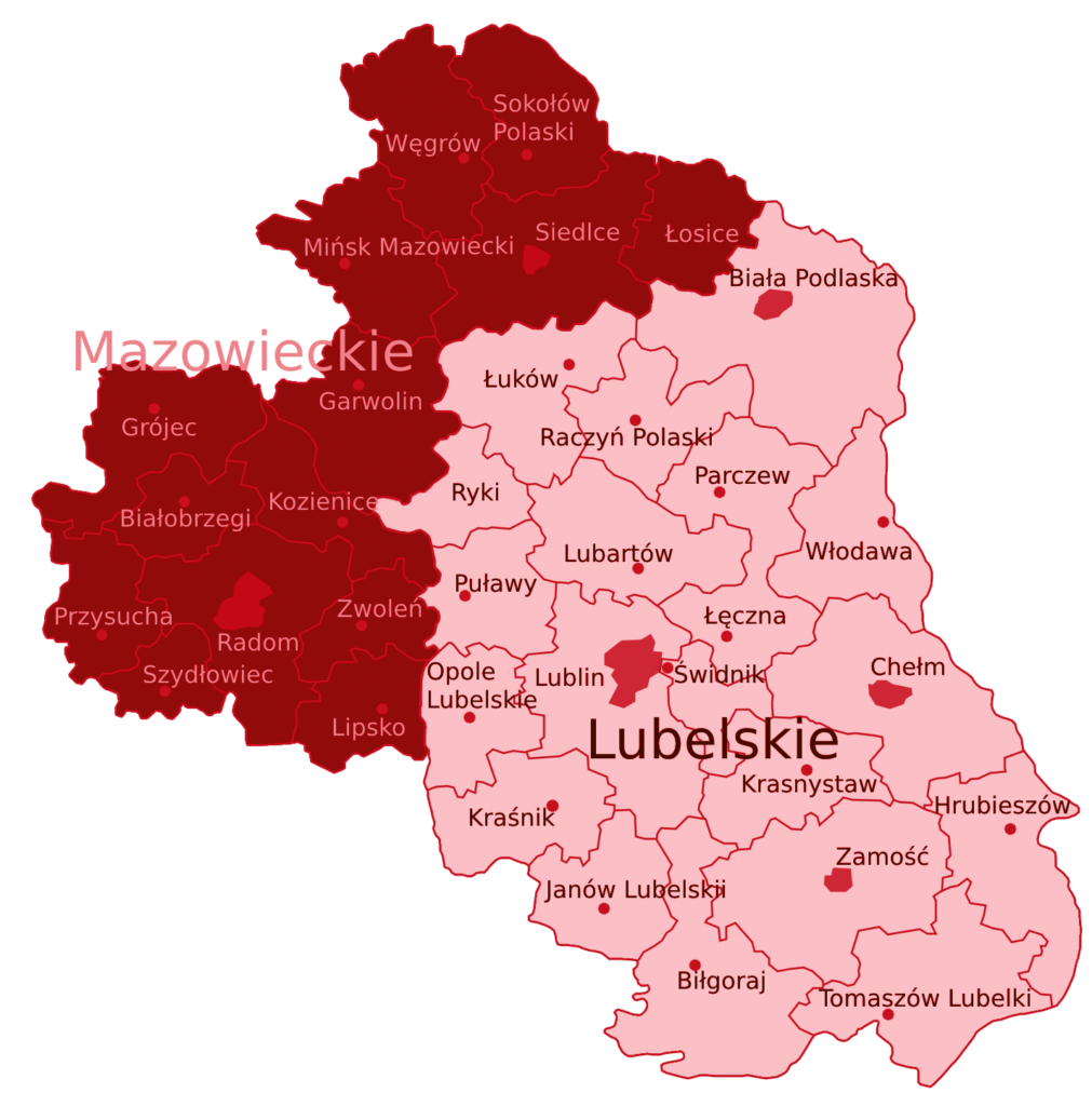 obszar właściwości sądów rejonowych w Białej Podlaskiej, Chełmie, Kraśniku, Lubartowie, Lublin-Wschód w Lublinie z siedzibą w Świdniku, Lublin-Zachód w Lublinie, w Łukowie, Opolu Lubelskim, Puławach, Radzyniu Podlaskim, Rykach i we Włodawie.